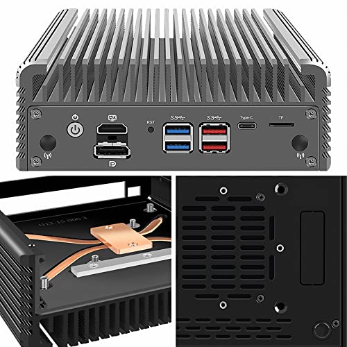 Apparecchio Firewall 12th Gen 4K@60Hz 6 port i226-V 2.5G Pentium Gold 8505 Fanless Mini PC con ventola interna 8010, 16GB DDR4 256GB NVMe, 4* USB, HDMI, DP, Tipo-C, Ethernet AES-NI VPN Router PC