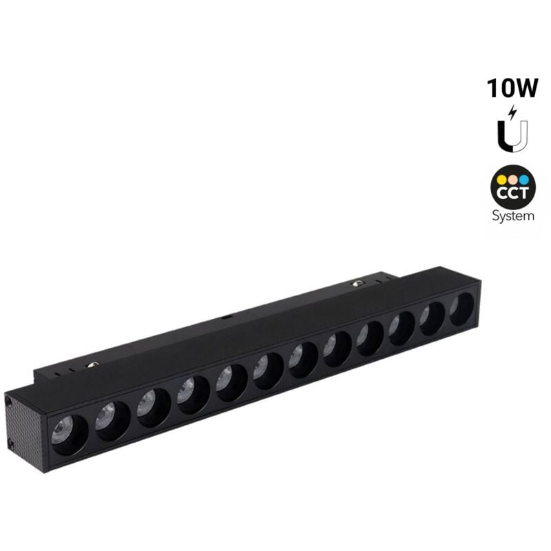 Faretto lineare a binario magnetico, con potenza di 10W, dal design moderno e di grande versatilità. Si installa facilmente premendo la base sul binario, senza bisogno di attrezzi. Consente di controllare la luminosità e, grazie al sistema CCT, di regolare la temperatura di colore. Si controlla con un telecomando Mi Light compatibile (rif.: FUT006 e FUT007). Il suo basso indice di abbagliamento (UGR18) garantisce un elevato comfort visivo per gli utenti. Funziona a 48V ed è sicuro per i bambini e gli animali domestici.