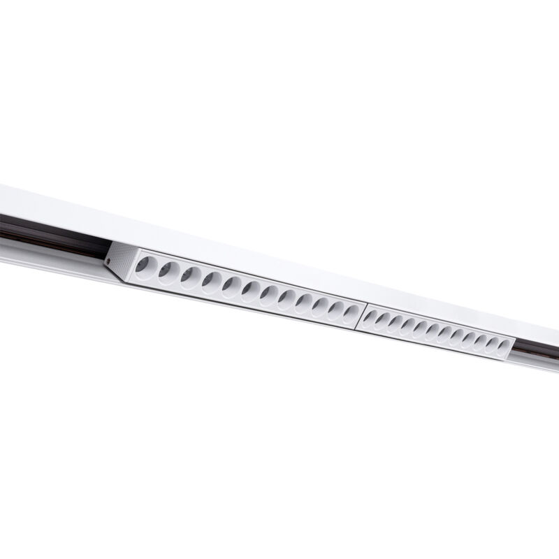 Faretto lineare a binario magnetico, con potenza di 20W, dal design moderno e di grande versatilità. Si installa facilmente premendo la base sul binario, senza bisogno di attrezzi. Consente di controllare la luminosità e, grazie al sistema CCT, di regolare la temperatura di colore. Si controlla con un telecomando Mi Light compatibile (non incluso). Il suo basso indice di abbagliamento (UGR18) garantisce un elevato comfort luminoso agli utenti. Struttura bianca.