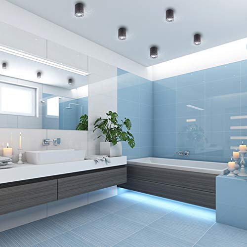 Contenuto della confezione: 1 lampada da soffitto MILANO IP44 rotonda, 1 attacco GU10, 1 LED bianco neutro da 5 W (senza cablaggio o accessori di collegamento)