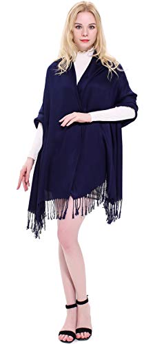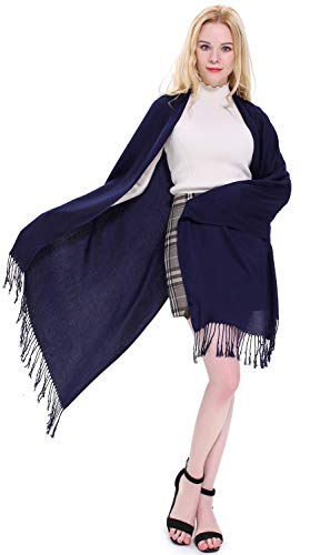 CJ Apparel Blu Navy Colore Solido Disegno Scialle di Pashmina Sciarpa Stola Dell'involucro Il Bis NUOVO