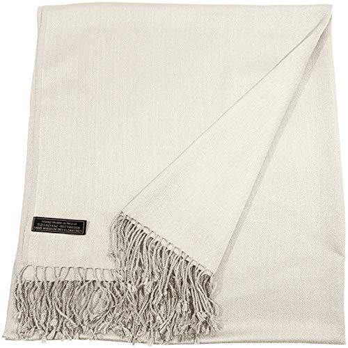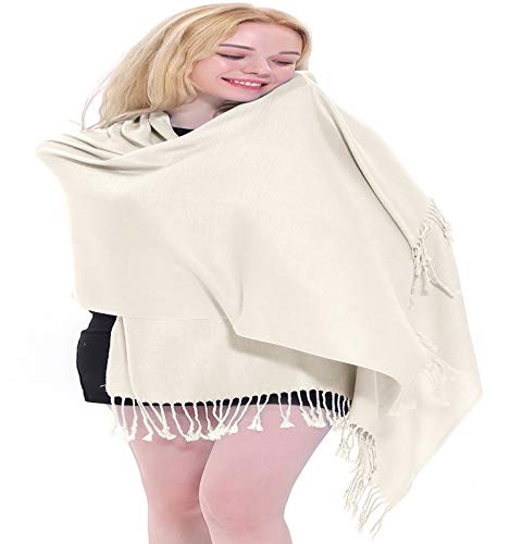 CJ Apparel Crema Sciarpa a Scialle Nepalese con Design a Tinta Unita Stola Secondi Copricapo Pashmina NUOVO