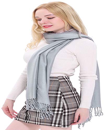 CJ Apparel Blu Grigio Colore Solido Disegno Scialle di Pashmina Sciarpa Stola Dell'involucro NUOVO