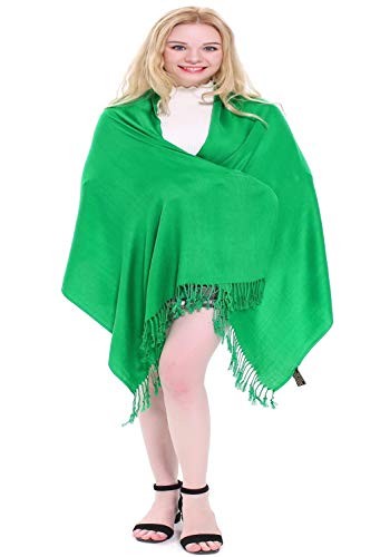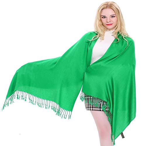 CJ Apparel Verde Foresta Colore Solido Disegno Scialle di Pashmina Sciarpa Stola Dell'involucro NUOVO