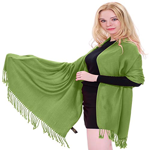 CJ Apparel Verde Sciarpa a Scialle Nepalese con Design a Tinta Unita Stola Copricapo Pashmina NUOVO