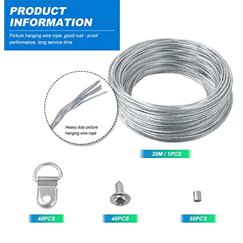 Set da appendere per immagini: il nostro kit per appendere le immagini include filo da appendere per foto da 30 m, 40 ganci ad anello, 40 viti e 50 manicotti ad anello di crimpatura, un set per tutto ciò di cui hai bisogno.
