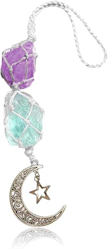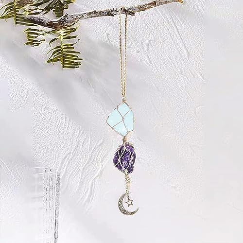 【Charms Fatti A Mano】: Versatili gioielli fatti a mano con pietre lucidate a mano e corda intrecciata a mano. Questi gioielli a specchio scintillano alla luce del sole, ogni ciondolo è composto da pietre di cristallo, stelle e lune, e può essere un pezzo decorativo per qualsiasi scena di vita o spazio di lavoro.
