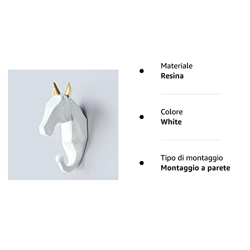 ZYCW Appendi Abiti da Muro Moderni, Decorativi da Parete Testa di Animale Resina Oro Mensole da Muro Design Attaccapanni per Giacche, Sciarpe, Borse, Zaini, Asciugamani (White,Unicorn)