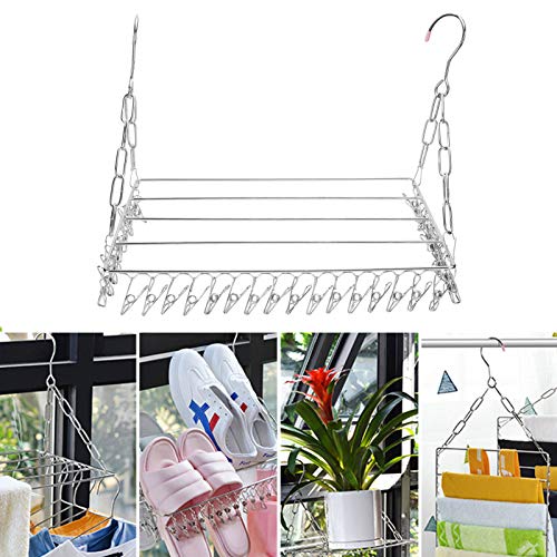 ⭐Questo stendino è realizzato in materiale di acciaio inossidabile ad alta durezza, che ha le funzioni di anti-cracking e anti-danneggiamento. È forte e resistente all'usura e può sostenere abbastanza vestiti. È dotato di 36 clip per facilitare l'asciugatura di calze e biancheria intima per evitare che vengano portati via dal vento. È molto comodo da usare.