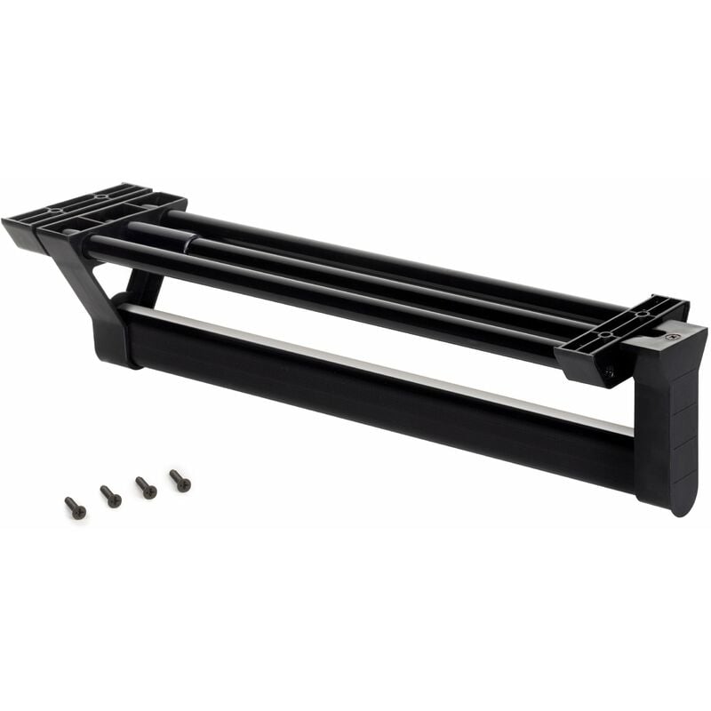 L'appendiabiti estraibile permette di organizzare in modo efficiente lo spazio all'interno degli armadi e cabine armadio, facilitando l'accesso delle grucce.� Prodotto in alluminio e plastica con finitura nera. Estraibile: facilita l'accesso alle grucce nell'armadio. Lunghezza utile 350 mm. Profondit� minima del mobile: 430 mm. Incluse le viti per il montaggio. 1 appendiabiti estrabile L 350 mm Verniciato nero Alluminio