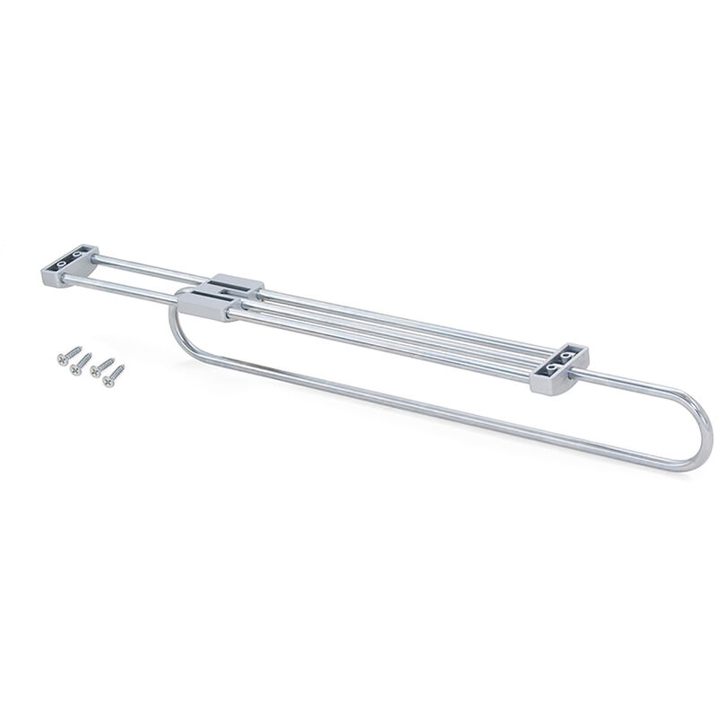 L'appendiabiti estraibile Self permette di organizzare in modo efficiente lo spazio all'interno dell'armadio e cabine armadio, facilitando l'accesso delle grucce. E' prodotto in acciaio con finitura cromata e in plastica verniciato alluminio. Prodotto in acciaio con finitura cromata e plastica 350 mm di larghezza Estraibile: facilita l'accesso delle grucce nell'armadio. 1 gancio estraibile, viti di montaggio