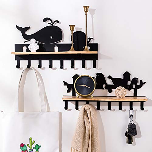Appendiabiti a Parete in Ferro Art + Appendiabiti in Legno massello con 6/8 Ganci, Perfetto per Ingresso, Cucina, Bagno, corridoio, atrio (Color: C, Size: 6 Hook)