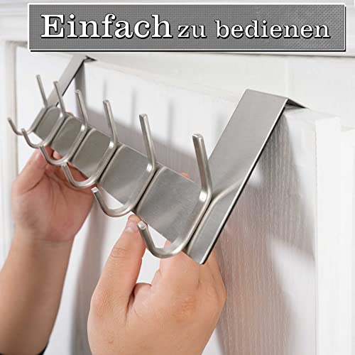 WEBI Appendiabiti da Porta,Acciaio Inox Attaccapanni da Porta,Gancio Porta,Appendino da Porta con 6 Ganci,2.1cm,Argento