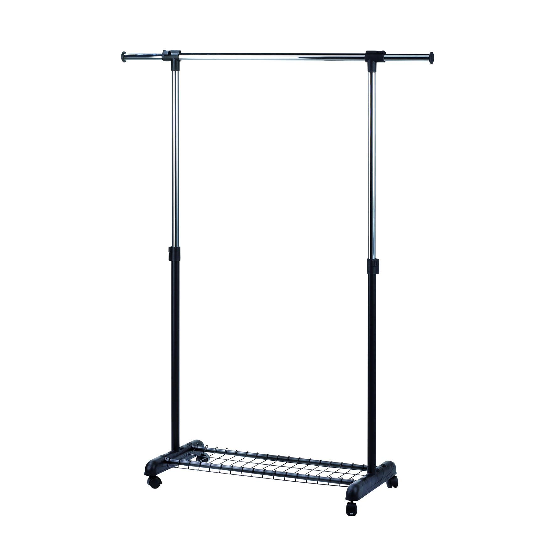 In metallo e plastica, con asta regolabile. L'asta regolabile permette di modulare l'altezza dello stender