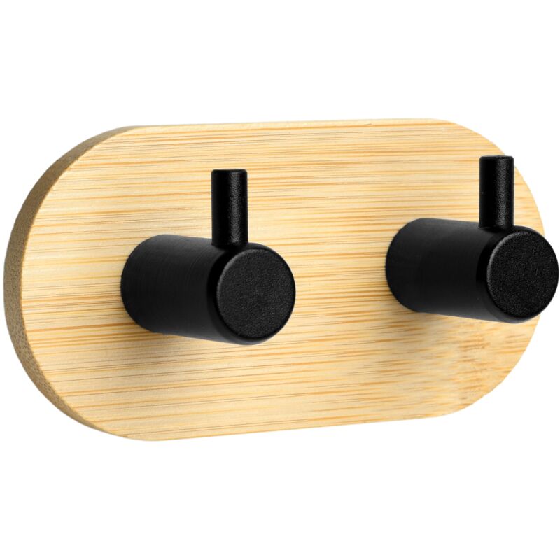 Appendiabiti da soppalco doppio da parete Kendar Destinazione d'uso: ufficio, bagno | Colori: nero opaco, bambù naturale La gruccia Kendar è realizzata in alluminio verniciato a polvere e legno di bambù verniciato. Nel processo di produzione sono stati utilizzati materiali della massima qualità. La combinazione di bambù naturale e colore nero rende Kendar perfetto per qualsiasi bagno. Si adatta perfettamente allo stile loft. Caratteristiche del prodotto: materiale: alluminio verniciato a polvere, bambù. resistenza alla corrosione peso: 60 g il set comprende: adesivo per il fissaggio a parete, istruzioni di montaggio Dimensioni: altezza: 45 mm larghezza: 90 mm profondità: 30 mm Vantaggi dell'installazione con colla Risparmio di tempo Non è necessario disporre di attrezzature adeguate Non è necessario chiamare uno specialista Perfetto quando non è possibile forare, ad esempio per affitti temporanei Protezione delle superfici delle pareti e delle piastrelle Protezione delle installazioni
