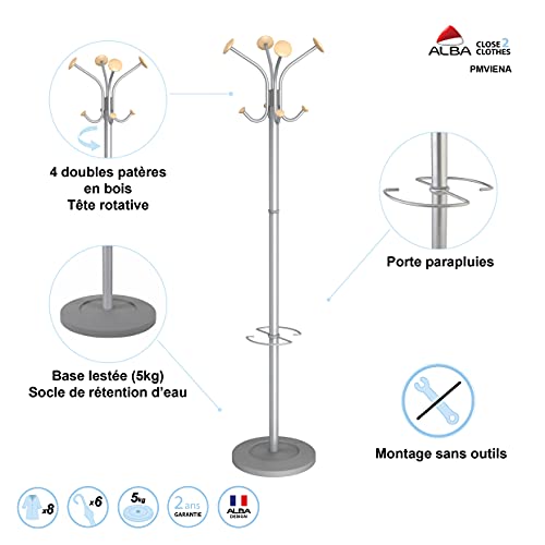 Appendiabiti Alba - Vienna - grigio e legno - 4+4 appendini - 175 cm - 38 cm - PMVIENA