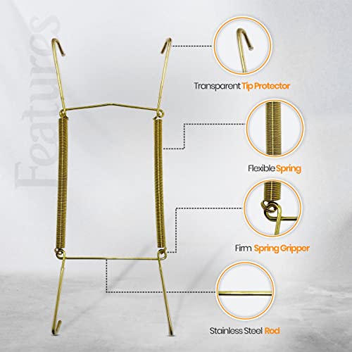 Appendini invisibili per parete | Supporto decorativo per piatti per appendere fili a molla con protezioni per punte da appendere alla parete (19-25 cm, ottone)