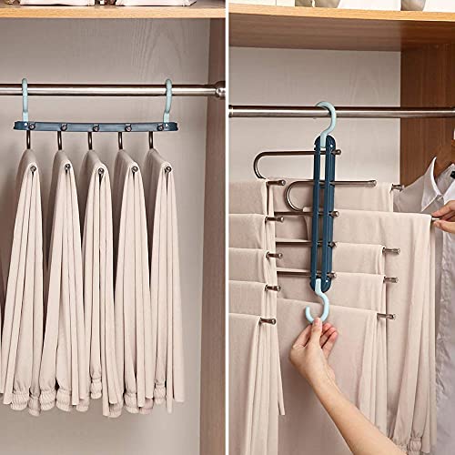 Appendini Pantaloni Guardaroba, 2 pezzi 5 in 1 Gruccia Pantaloni, Salvaspazio Gruccia Pantaloni, Appendiabiti Pieghevole Pantaloni, Appendini Magici Salvaspazio, per Jeans, Sciarpe, Vestiti (Blu)