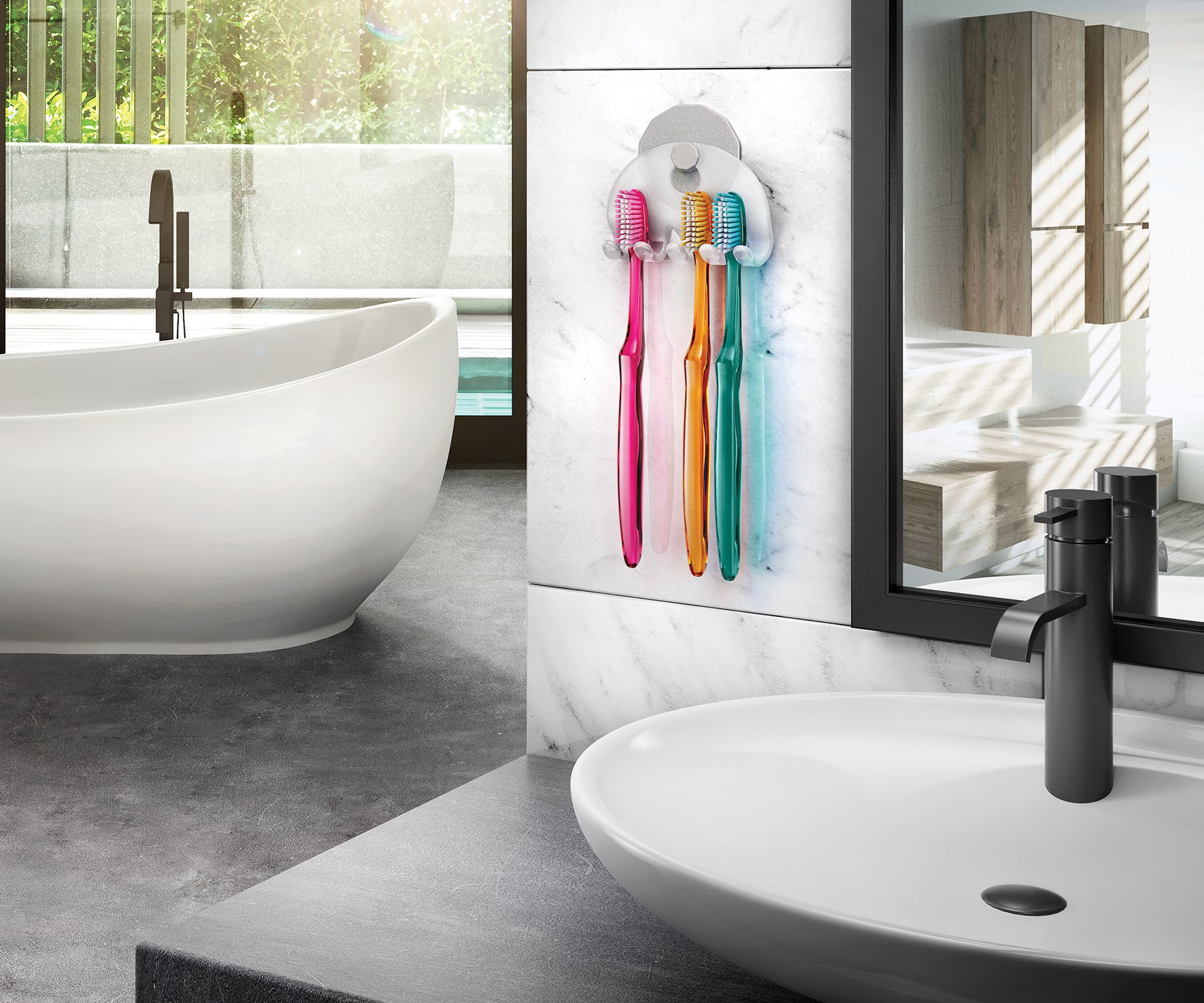 Gancio multiplo in plastica traslucida con dischetto di supporto biadesivo per appendere senza forare - con istruzioni di fissaggio e rimozione. multiuso. multiuso