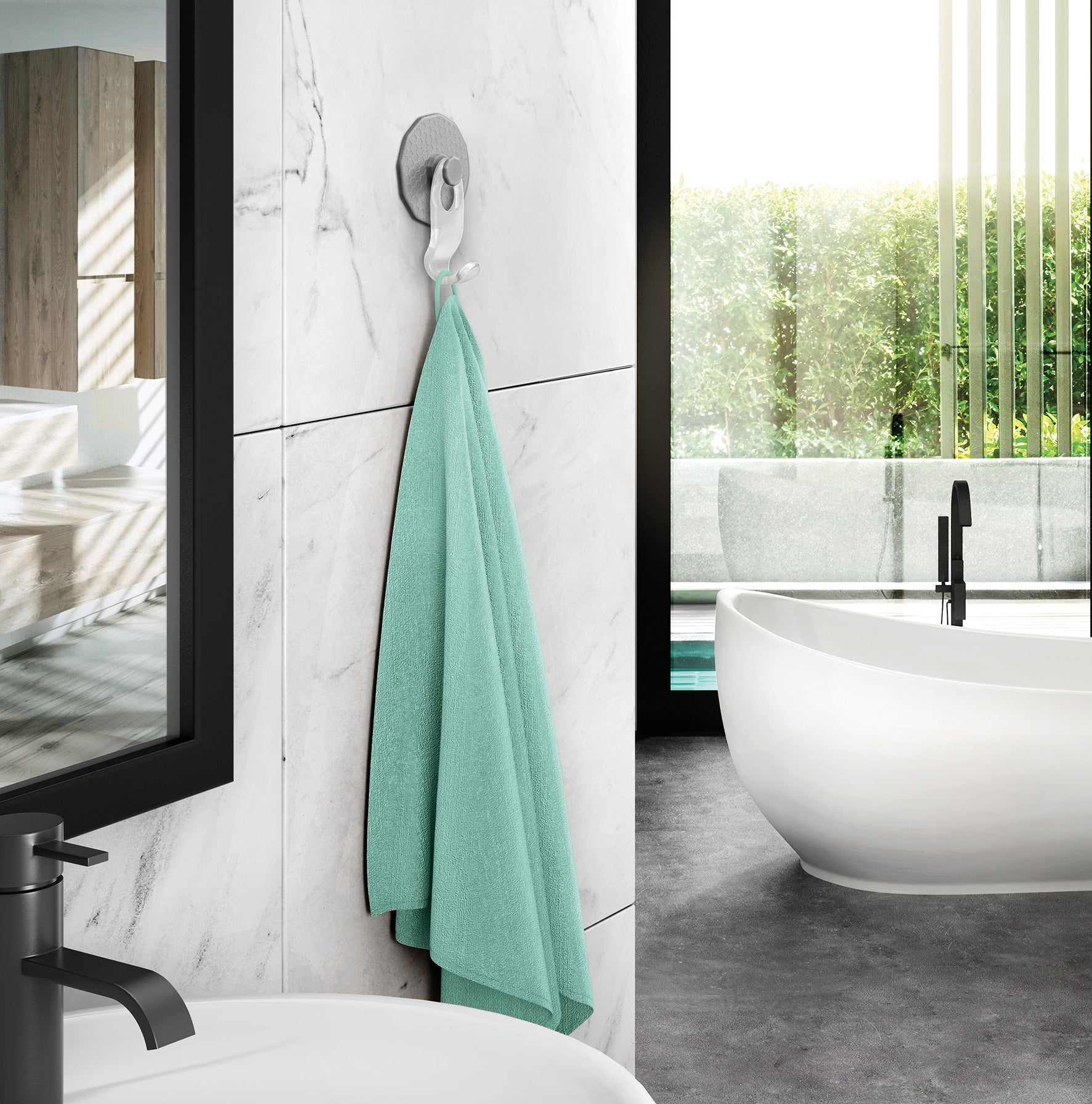 Gancio singolo in plastica traslucida con dischetto di supporto biadesivo per appendere senza forare - con istruzioni di fissaggio e rimozione. multiuso. multiuso