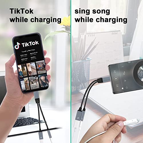 Apple MFi Certified - 2-in-1 Lightning to 3,5 mm Headphone Jack Adapter for iPhone and Charger Dongle,Earphones Converter Splitter Support Music+Charge+HiFi+Mic+Control for iPhone (Can't Call)
