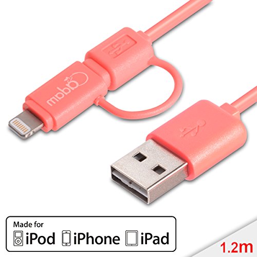 Apple MFI Certified - Adam Elements 1.2m Rosa 2-in-1 (Lightning a USB connector e Micro connector) Piatto Reversibile USB Cavo della ricarica sincronizzazione dati Per iPhone 6 Plus, iPhone 6, iPhone 5s / 5c / 5, iPad Air / Mini / Mini2, iPad 4th Generation, iPod 5th Generation HK419
