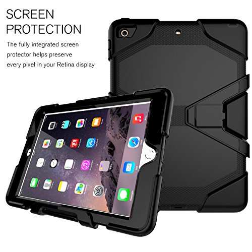 Apple New iPad 9.7 Inch 2017 Custodia,HAVE1SEE[Kickstand]Heavy Duty Shockproof Rugged Cover Hard PC+Silicone Hybrid Impact Resistant Full Body Protective Custodia with Screen Protector Black