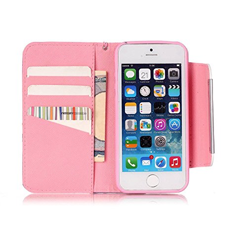 Apple iPhone 5 5S SE Custodia,Linvei Custodia in PU Pelle Portafoglio Protettiva Custodia con Supporto/Carte Slot - Unicorno