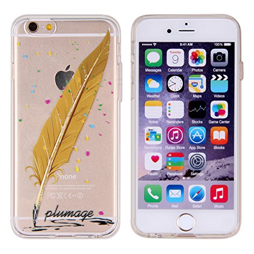 Apple iphone 6 Plus/6S Plus Piume verniciate serie Cover, Ukayfe Morbido TPU Gel Silicone Protettivo Skin Protettiva Shell Case per Apple iphone 6 Plus/6S Plus 5.5 pollici satinato fine piuma facile Mat semi transparente Copertura Tacsa Custodia Caso Cover Con Stilo Penna - Scuro piume arancioni