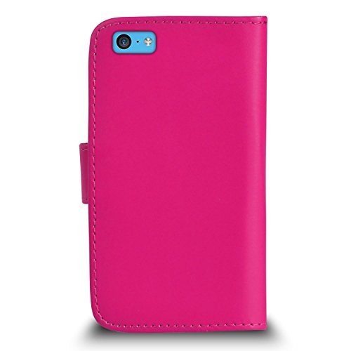 Apple iPhone 5C Premio Pelle ROSA CALDO Portafoglio Capovolgere Caso Copertina Marsupio Con Mini & Big Toccare Stilo Penna ROSSO Polvere Tappo Schermo Protettore & Lucidatura Stoffa SVL3 DI SHUKAN®, (PORTAFOGLIO ROSA CALDO)