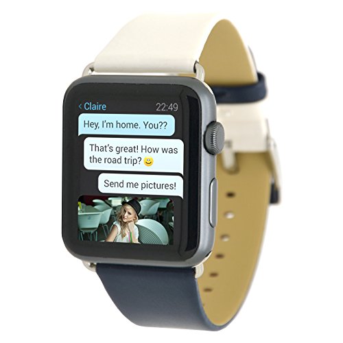 Apple Watch Cinturino 38mm,iWatch Series 3 Series 2 Doppio Colore Cinturino in Vera Pelle Fascia di Polso di Ricambio con Chiusura in Metallo Chiusura Fibbia per Apple iWatch Serie1 [Bianca-Blu Scuro]-MisVoice