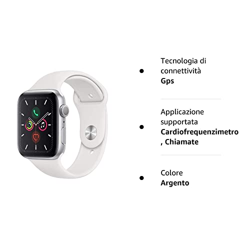 Apple Watch Series 5 44mm (GPS) - Cassa In Alluminio Color Argento Con Bianco Cinturino Sport (Ricondizionato)