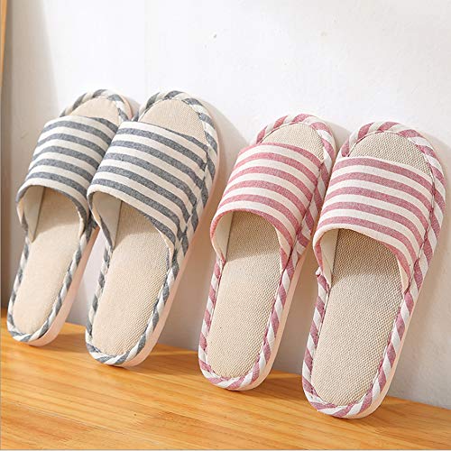 Not application Pantofole Antiscivolo da Interno in Lino a Righe da Uomo e da Donna