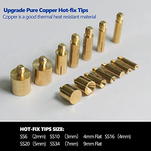 【FACILE DA USARE】L'applicatore Hotfix con interruttore ON / OFF, Dotato di staffa di sicurezza e 7 punte applicatori di diverse dimensioni. 7 punte hotfix: 1 x 2 mm, 1 x 3 mm, 1 x 4 mm, 1 x 5 mm, 1 x 7 mm, 1 x 9 mm, 1 x hotspot.