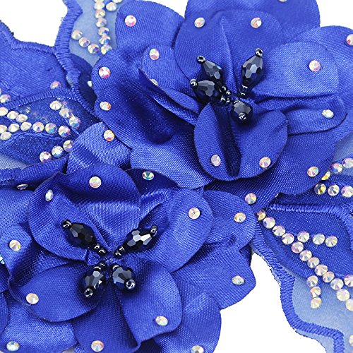 Applicazione decorativa, fiore 3D con perline, strass e pizzo, applique per abito da sposa, spilla per capelli - 1 pezzo Blue