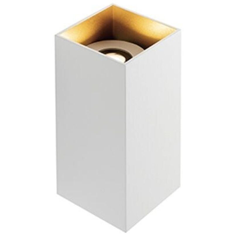 Collezione Tower EFFETTO D'OMBRA GEOMETRICO NETTO Lampada da parete in alluminio pressofuso, bianco oro, dalla linea squadrata.. Grazie all'eliminazione della base è montata direttamente a filo parete creando così un effetto d'ombra geometrico netto. Illuminazione a LED 230V con alimentatore integrato. Biemissione di luce ad effetto, superiore e inferiore con diffusori in vetro trasparente. LED 12W 3000K (COB Ø7.5mm 1+1pcs).