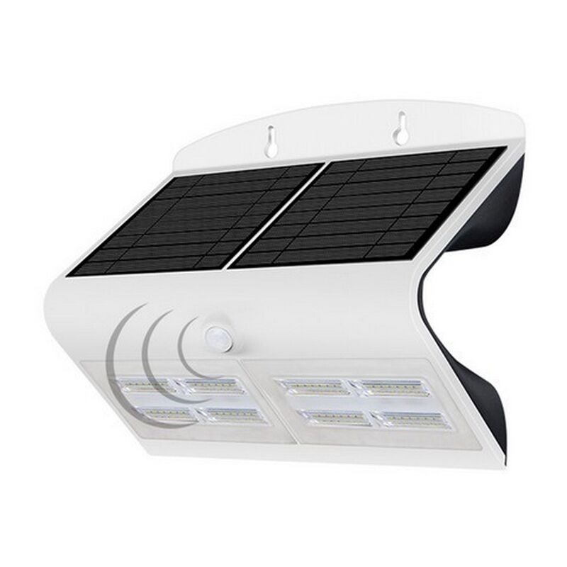 Le applique LED sono lampade che utilizzano la tecnologia a LED per produrre luce e sono progettate per essere montate direttamente sulla parete. Possono avere una varietà di funzioni negli spazi esterni: dal creare un'illuminazone ambientale generale o focalizata su un'area specifica a creare effetti di luce decorativi sulla parete.L'applique emette un fascio di luce neutra dalla potenza di 1,5W. È alimentato ad energia solare grazie al pannello posto sulla parte superiore, così da durare più a lungo. Questo modello è dotato di un sensore crepuscolare che gli permette regolare in autonomia, in base alle condizioni di luce circostanti, l'accensione, lo spegnimento e l'intensità. Inoltre, può essere utilizzato all'esterno perché totalmente protetto dalle polveri e dai getti d'acqua.