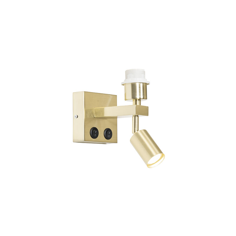 QAZQA Applique moderno in ottone con lampada da lettura - Brescia Arreda la tua casa con la nostra applique moderna Brescia. È realizzata in acciaio e rifinita in oro. Questa affascinante applique è progettata per offrirti la combinazione di illuminazione perfetta grazie alla luce di lettura integrata. Brescia ha una profondità di 20 cm, un'altezza di 20 cm e una lunghezza di 9,8 cm. La piastra di montaggio ha una profondità di 2,8 cm, una lunghezza di 9,8 cm e una larghezza di 9,8 cm. Puoi completare questa lampada con una lampadina E27 e una GU10, ricordati di ordinarle separatamente. La lampadina GU10 non deve superare i 35 mm di diametro, altrimenti non si adatta alla lampada. Puoi rendere la tua casa ancora più accogliente con un dimmer esterno (dimmer non incluso). Un'applique molto multifunzionale per la tua casa con questa Brescia. Portalampada: E27 . Max 1 x 40 W, 230 V Adatto a: Algogene, LED, Incandescente,Risparmio energetico Voltaggio: 220V/230V IP Classe di protezione