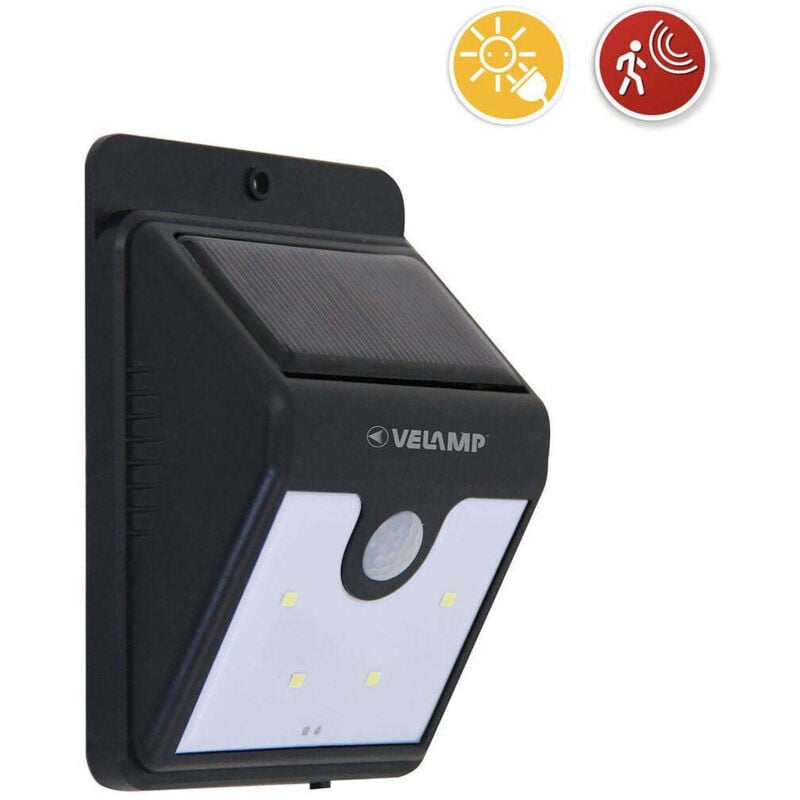 A carica solare con rilevatore di movimento, corpo in plastica, pannello solare monocristallino, batteria litio 3,7w 600 mah 40 lm, dimensioni mm 114x86x41
