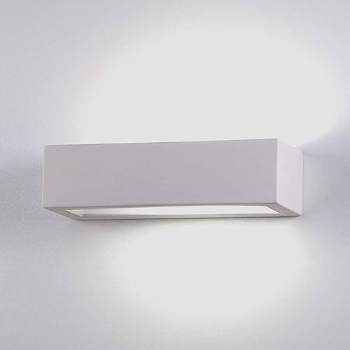 Applique di ceramica gesso bianca forma rettangolare moderna 1xe27 led luce sopra sotto pitturabile made in Italy