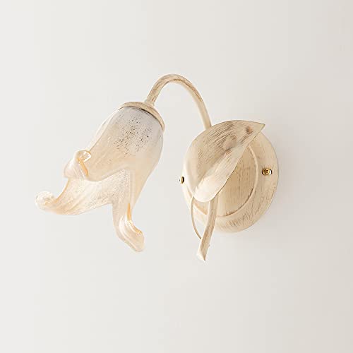 Applique Classico 1 Luce Foglie in Ferro Battuto Vetro Avorio e Oro Serie Limone