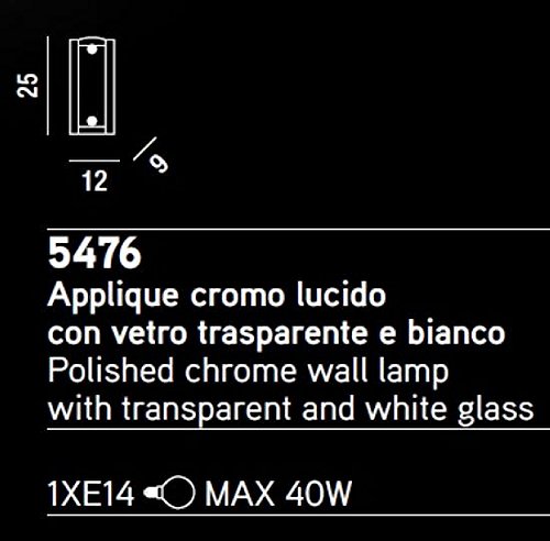 Applique Cromo Lucido Lampada da parete Con Vetri Trasparente E Satinato 1 lampadina con attacco E14 max 40W dim. L12xH25XP9 cm Modello Perenz 5476