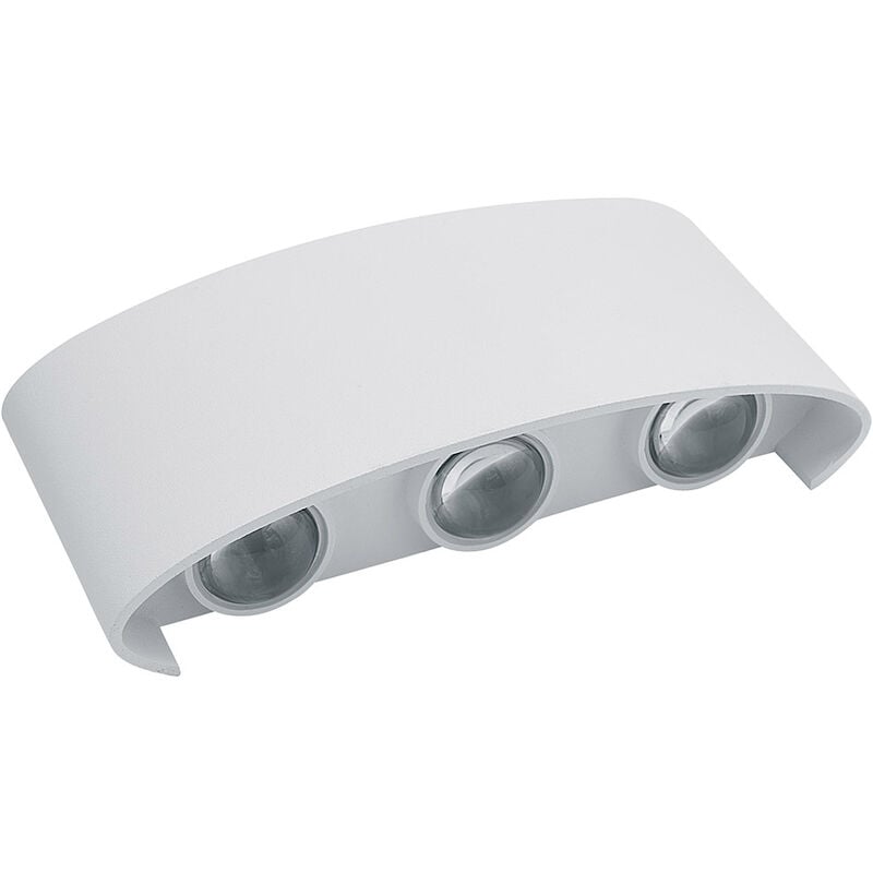 Applique per esterno dotato di doppio led cob 3 led superiore e 3 led per la parete inferiore. Ogni singolo led COB è dotato di una copertura trasparente che permette di direzionare i fasci di ogni LED, in modo da creare un elegante effetto di luce su pareti e colonne. L'applique è ideale per esser istallato sia negli ambienti esterni che interni alle abitazioni. Potenza: 16 watt Flusso luminoso: 1300 Lm Fascio luminoso: 70° Colore della luce: Bianco 6500k Colore: Bianco Indice di resa: CRI(RA)>80 Tensione di ingresso: AC 100-240V 50/60 Hz Materiale: Alluminio Grado di Protezione: IP65 Dimensioni: 170x80x40 mm Peso: 600 gr