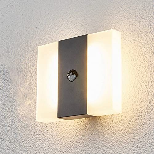 Applique da esterni 'Kumi' con sensore di movimento (Moderno) colore Grigio, in Alluminio (20 luci, lampadina inclusa) di Lindby | Applique per parete esterna/parete di casa, abitazione, terrazzo und