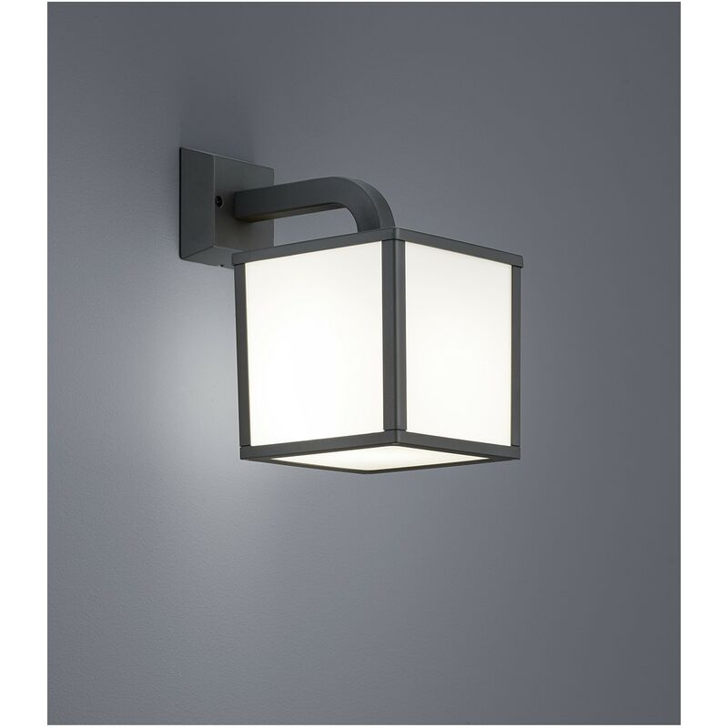 Applique LED per Esterno Cubango Antracite IP54 La lampada da parete Cubango di Trio Lighting presenta una struttura cubica in alluminio pressofuso di colore antracite e diffusore in plastica bianca, rivolto verso il basso. Articolo resistente alle variazioni di temperatura e alla corrosione grazie al grado di protezione IP54. In dotazione vi è una lampadina E27 LED 5 watt, resa luminosa 400 lumen, temperatura colore 3000k (luce bianca calda), facilmente sostituibile una volta guasta. Un'applique dalla forma geometrica semplice cubica e dal design compatto e versatile. L'ottima impermeabilità e qualità costruttiva permettono la collocazione di questa lampada in qualsiasi tipo di ambiente interno o esterno. Consigliata ad esempio da collocare singolarmente o anche in sequenza in balconi, terrazze, garage, ingressi e zona giardino. Disponibili sul nostro sito anche i pali lampioni da giardino correlati della stessa serie. Caratteristiche: Struttura cubica in alluminio pressofuso