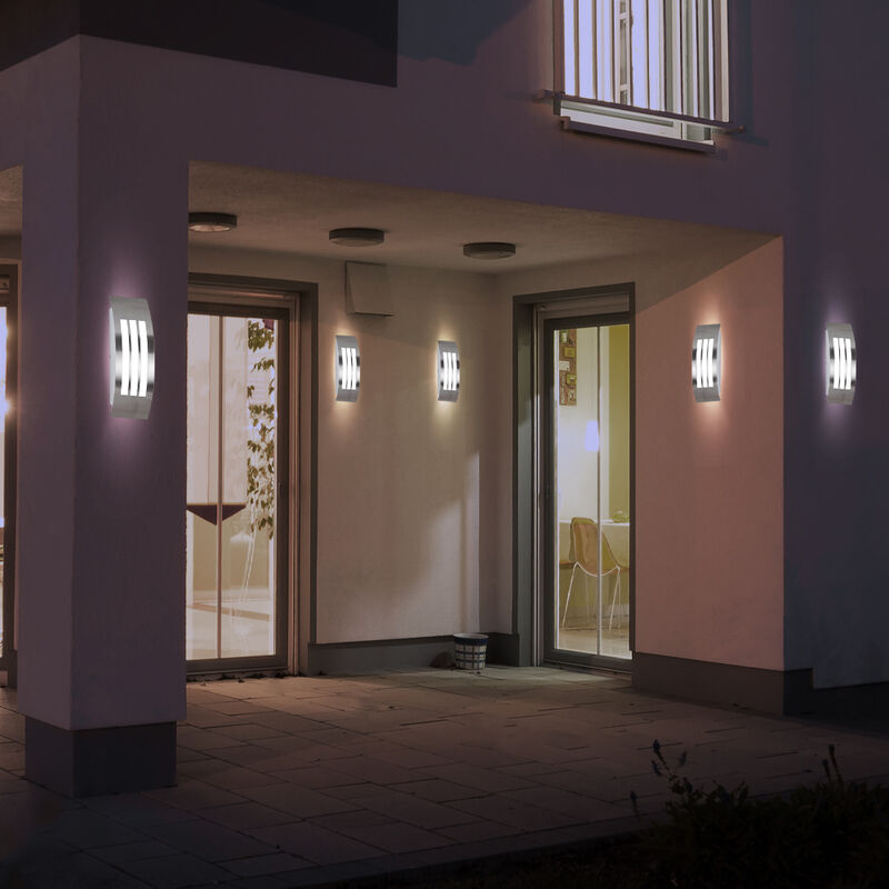 Descrizione Lampada da parete per esterno. Questa lampada fa risplendere la tua area esterna in una luce uniforme. La lampada da parete in metallo è progettata secondo la classe di protezione IP44. Rispetto alle normali luci, i faretti LED consumano solo una minima quantità di elettricità e sono addirittura inferiori rispetto alle luci a risparmio energetico. Questo protegge l'ambiente e il tuo portafoglio. Nella fornitura è inclusa una lampadina LED di alta qualità a risparmio energetico. La fornitura comprende 4 luci! particolari • Tipo di lampada: lampada da parete • Montatura: metallo • Paralume: plastica bianca • Grado di protezione: IP44 • Larghezza x altezza in cm: 10x31,8 • Presa: 1x E27 • Lampadina inclusa: Sì • Potenza lampada: 1x 11 watt • Flusso luminoso: 1x 1055 lumen • Colore chiaro: bianco caldo • Voltaggio: da 220 a 240 volt, da 50 a 60 Hz Dettagli lampadine • Tipo di sorgente luminosa: LED SMD • Presa: E27 • Forma: pallina (bianco-opale) • Materiale: plastica • Flusso