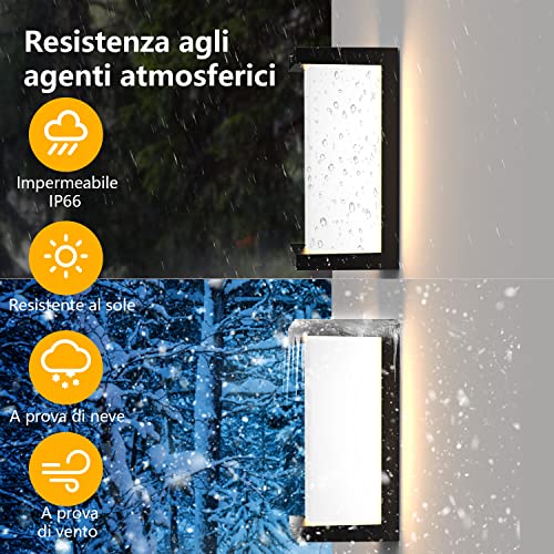 ✅【IMPERMEABILE IP66】Con una robusta lega di alluminio e stabile e durevole, il paralume acrilico di alta qualità ha una buona trasmissione della luce e uniformità.Questa moderna applique da esterno per qualsiasi condizione atmosferica come nuvoloso, pioggia pesante, neve, ghiaccio, tempo caldo, ecc