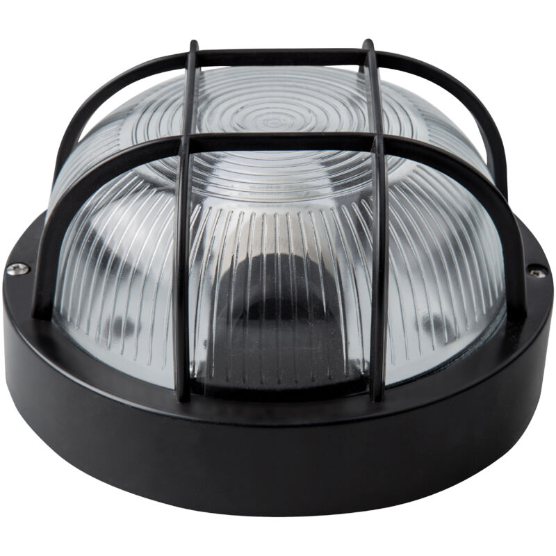 Applique da esterno rotonda (IP54). Include portalampada E27. Potenza massima della lampadina: 40W. Corpo e griglia di manifattura su PC. Schermo diffusore in vetro. Facile installazione diretta a 230V.