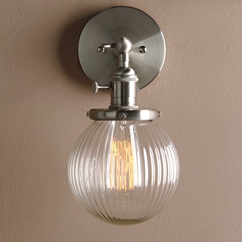 Applique a globo in vetro trasparente rigato "Pathson" con design antico per interni, illuminazione da parete, lampade da parete Loft. Gebürsteter Edelstahl Farbe