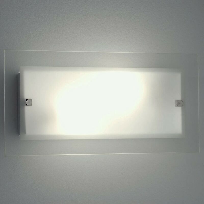 Applique da parete o plafoniera da soffitto dalla forma geometrica e scontata, un modello funzionale e pratico nella sua collocazione. Un'illuminazione a luce diffusa e ad alta resa in tutto l'ambiente. Applique AP FLAT G 40x20 rettangolare Illuminando Lampada parete in vetro moderno con luce diffusa attacco E27 LED Struttura in metallo bianco. Vetro 4 mm in lastra lucido serigrafato bianco latte con bordo trasparente. E' provvisto di laterali che coprono le lampadine e quindi può essere preso in considerazione anche per vani scale. Design moderno un semplice rettangolo ideale per illuminare: camera da letto, soggiorno, corridoio, luoghi pubblici, ecc.... Una luce diffusa per illuminare qualsiasi parete della casa, ma solo pareti all'interno della casa con assenza di umidità per il grado di protezione IP20. Lampada da parete provvista di due portalampade attacco E27 a LED non indichiamo il wattaggio della lampadina a led perchè sono in continua evoluzione e non avendo un'elevata